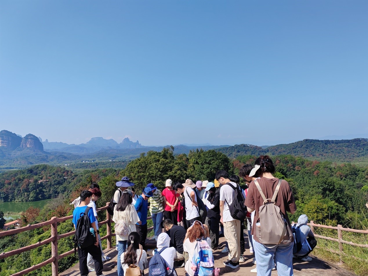 实习第二天上午,大家来到丹霞山世界地质公园博物馆进行参观学习。在讲解员生动的讲解下,同学们初步了解到丹霞山近些年的概况,对丹霞山有了进一步的认识。随后,同学们在老师的带领下,沿着丹霞山第一科考路线,先后经过梦觉关、通天洞、一线天等自然奇观。