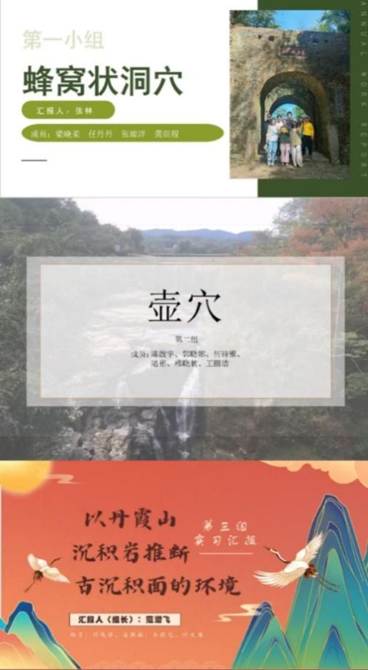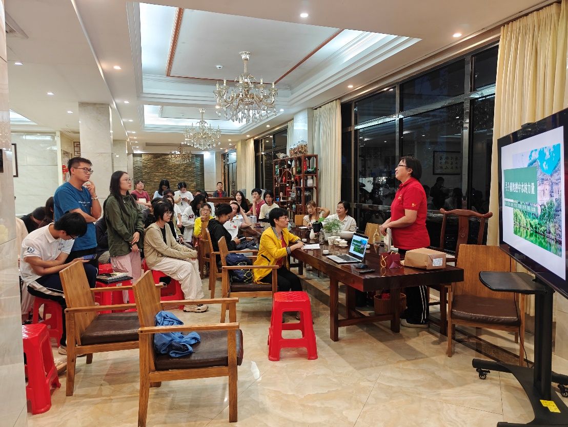 晚上,实习带队教师邀请丹霞山管理委员会陈昉副主任和丹霞山世界地质博物馆余东亮与刘蕴吉两位老师一同出席地理231班的地质地貌水文野外实习主题研讨会。同学们基于这次实习的所学知识和查询的资料,以小组的形式对各自主题进行汇报,老师们进行了精彩的点评,现场讨论气氛热烈。