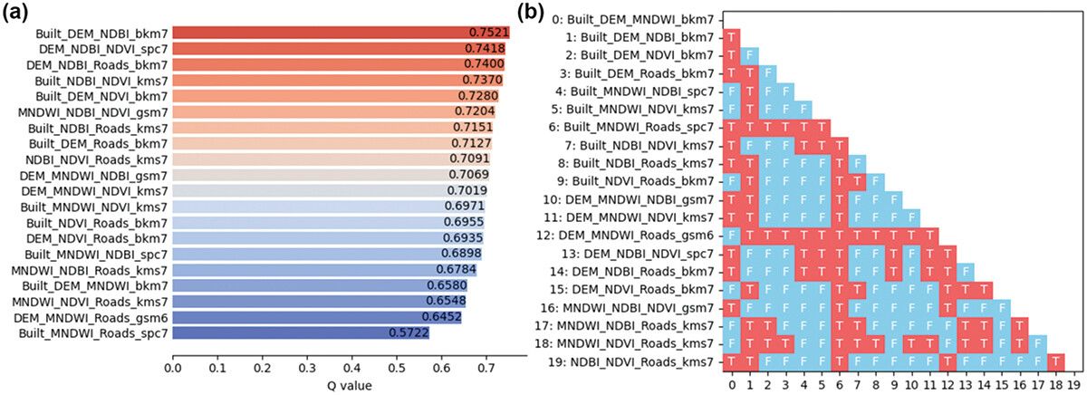 图4 (a)三因子组合的因子探测器结果和(b)三因子生态探测器结果