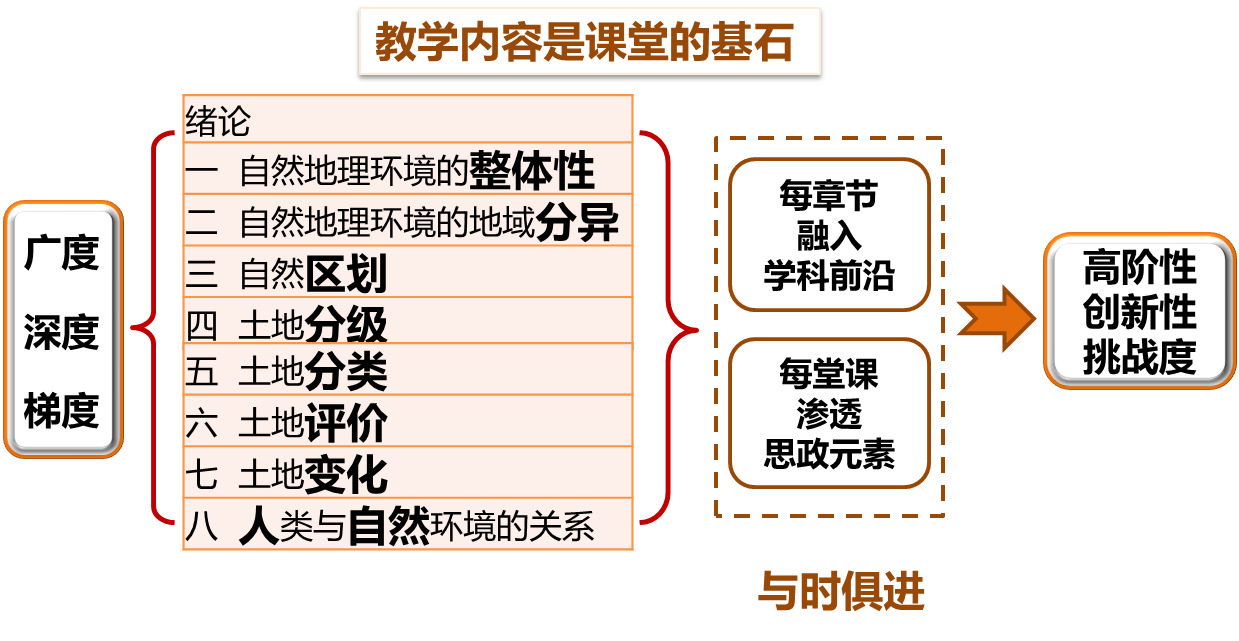 《综合自然地理》是地理科学专业高年级学生的专业课,是一门综合性和高阶性课程,以培养具有科学探索精神的“德才兼备”地理科学拔尖人才为总体目标。课程的任务是使学生理解自然地理环境的整体性和分异性,理解自然区划、土地分级、分类和评价等基本概念与原理,掌握自然区划、土地分级、分类和评价的基本方法。通过课程学习,培养学生地理实践力、综合思维和区域认知等地理核心素养,使学生能够灵活运用自然地理学的知识分析和评价地理问题,培养学生创新性思维和科学探索精神;培养学生良好的人地协调观,树立和践行绿水青山就是金山银山的理念,建设美丽中国。