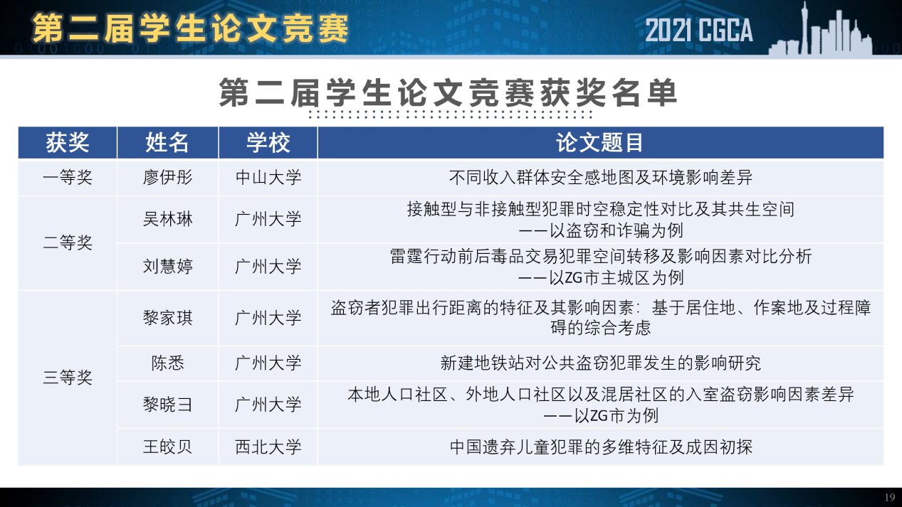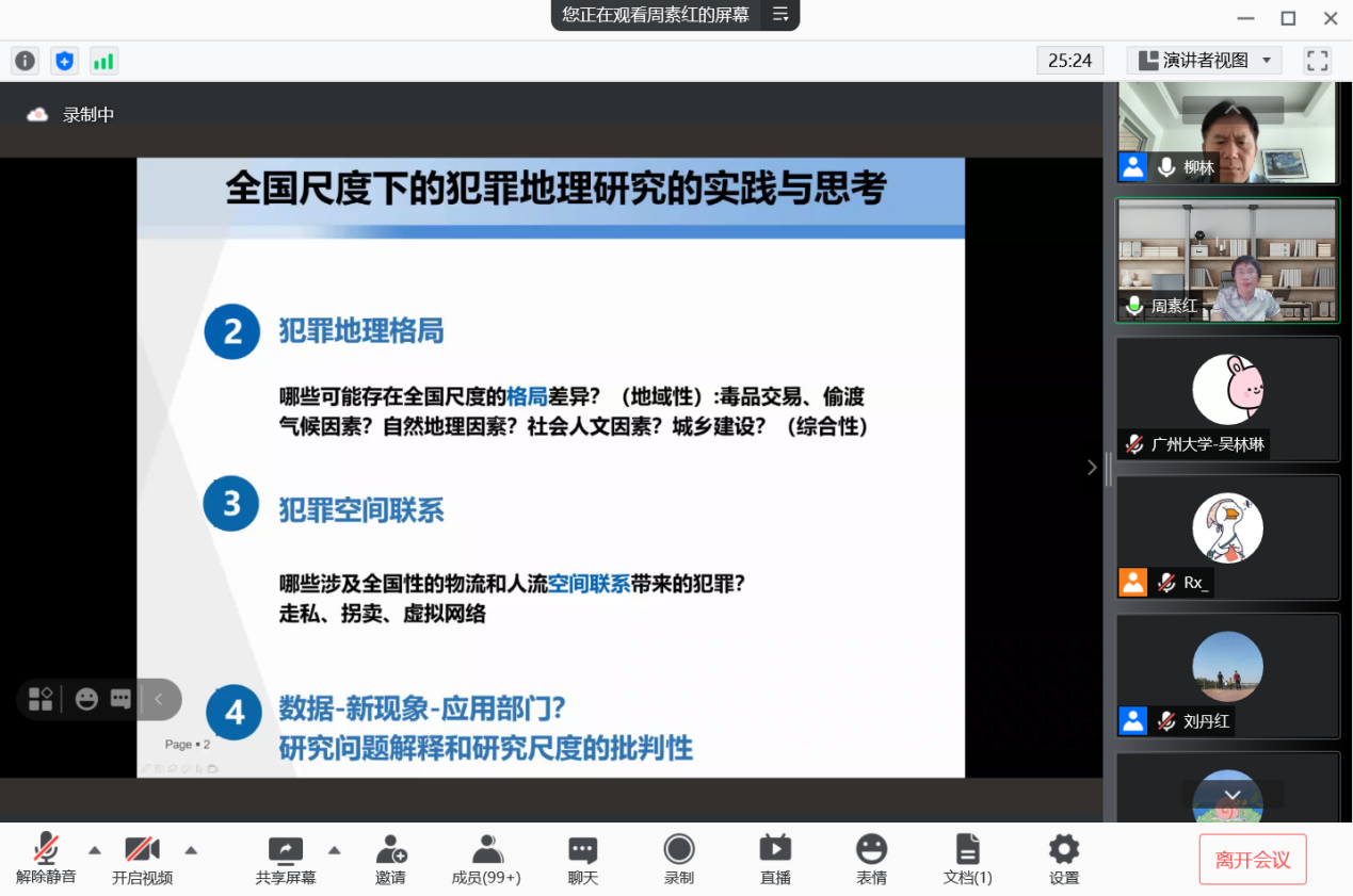 最后,柳林教授对本次会议进行总结,认为学生论文所研究的犯罪类型呈现多样化特征,参赛学生们表现优异。此外,柳老师还从新犯罪类型、新方法、实践应用、学术团体建设等方面对犯罪地理与犯罪分析学术网络的发展做了展望,期望本领域的发展能不断取得更大的突破和成绩。