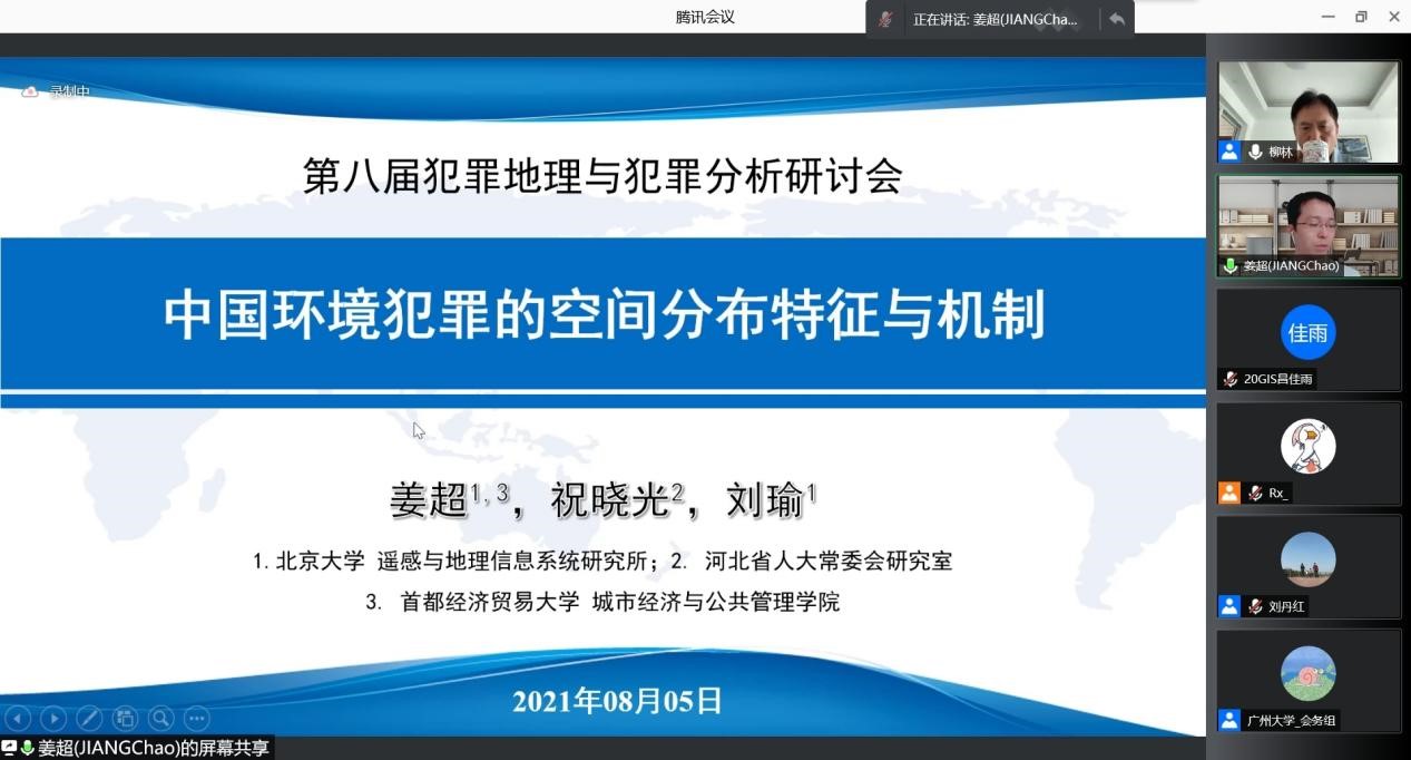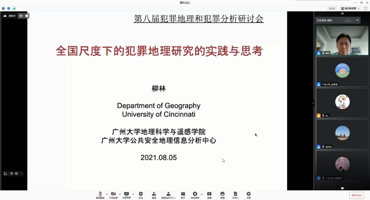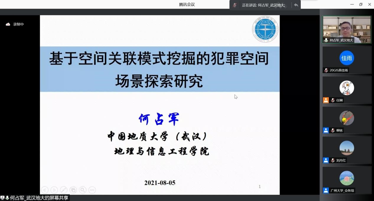 2021年8月5至6日,第八届犯罪地理和犯罪分析研讨会(CGCA)暨第二届学生论文竞赛在线上平台腾讯会议成功举办。本次会议由allwincity万象城官方网站主办,allwincity万象城官方网站公共安全地理信息分析中心、allwincity万象城官方网站承办,广东省公共安全与灾害工程技术研究中心、辛辛那提大学地理系、中国地理学会地理模型与地理信息分析委员会协办。来自allwincity万象城官方网站、中山大学、西北大学、中国人民公安大学、中国科学院东北地理与农业生态研究所、中国地质大学、北京大学、首都经济贸易大学、复旦大学、浙江警察学院、河北省人大常委会研究室等多所高校、科研院所共200余名师生参与了本次会议。会议围绕当前犯罪地理研究的学术前沿和社会需求,开展了沙龙研讨、方法讲座、学生论文竞赛等活动,共同探讨犯罪地理和犯罪分析研究的热点问题、技术方法、实践应用及未来发展方向。