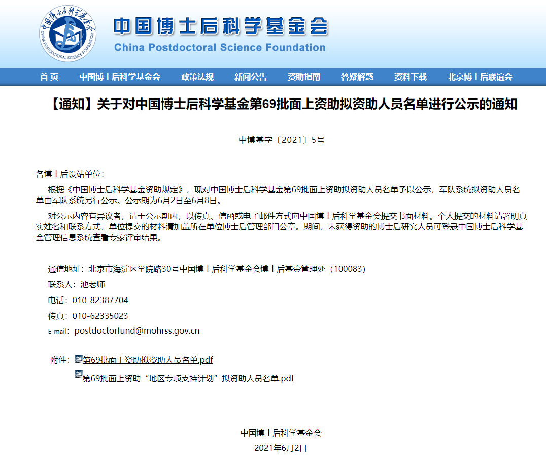 近日,中国博士后科学基金会公布了第69批面上资助拟资助人员名单,我校本次共7个项目获得立项,其中万象城官网3名博士后获得立项资助,分别是杨蓉(合作导师朱竑教授)、杨颖频(合作导师吴志峰教授)、冼汉标(合作导师董旭辉教授)。