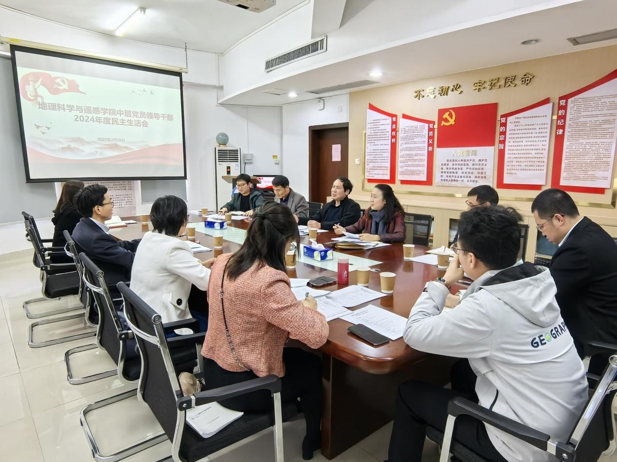 2025年2月28日上午,学院党委2024年度中层党员领导干部民主生活会在党员活动室召开。学院全体党员中层领导干部参加会议,学院非党员班子成员、其他党委委员、教工党支部书记代表、学生支部书记、团委书记以及专职组织员列席会议。会议特邀学校副校长李进同志到会指导。
