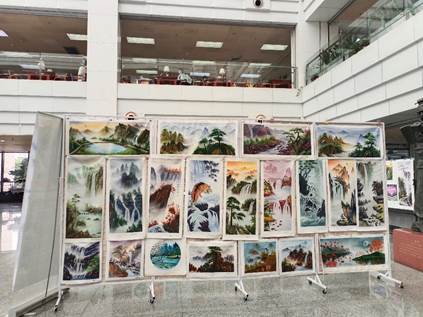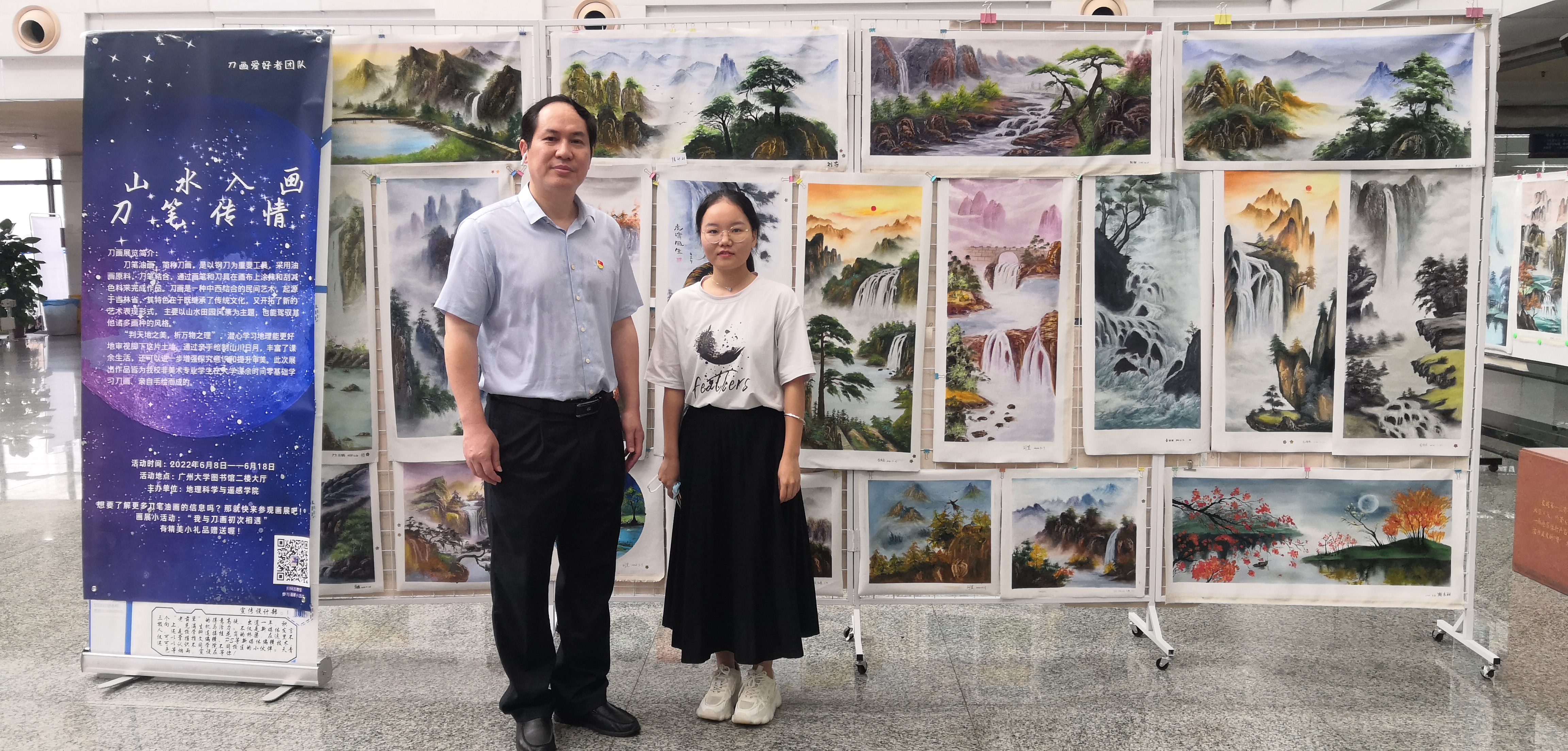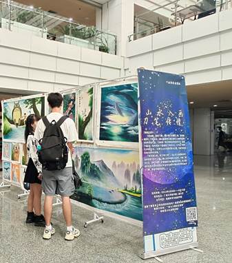 万象城官网学子李倩霞带领的刀笔爱好者团队在图书馆二楼举办“首届刀笔油画公益画展”,展示团队成员所创作的刀画作品,让更多同学认识刀画、了解刀画,参展作品题材有山水、动物、动漫、星空、人物、花卉等。