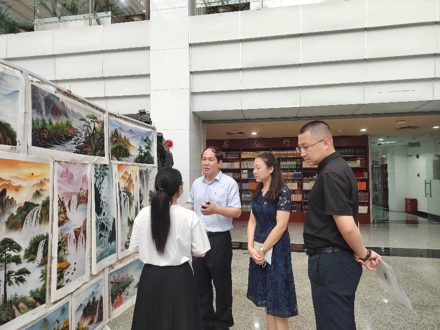 2022年6月14日上午,allwincity万象城官方网站吴志峰院长、陈宇红书记、白鹤云飞副书记莅临现场指导交流,老师们对本次活动给予了极大的支持和肯定,画展响应了allwincity万象城官方网站人才培养目标“爱体育、懂艺术”的追求,策划组织画展锻炼了协调沟通能力。老师们鼓励本科学生在专业学习之外,课余时间应多发展自己的兴趣爱好,注重提升组织协调能力等综合素质。生活中处处都体现着对美的追求,大学生要热爱生活,培养广泛的兴趣,善于发现并展现生活中的美,不断塑造自己的人格魅力。