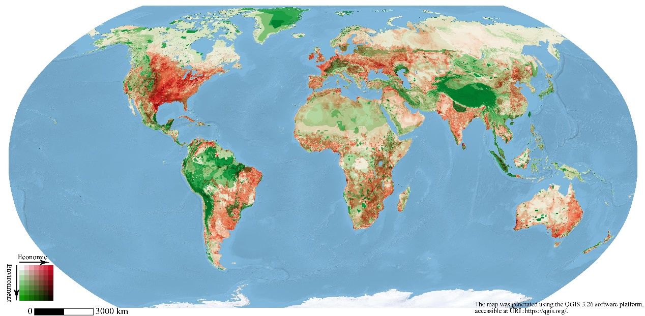 该研究提供了优化全球轨道交通路线的战略方案,旨在综合考虑经济和环境因素,推动可持续的轨道交通发展。研究采用Bivariate Choropleth-Multi-Criteria Decision Analysis(BC-MCDA)模型,将全球区域划分为经济效益区、环境保护区、高冲突区和低冲突区。研究结果显示:7.42%的区域适合轨道交通的建设或优化,能够促进经济效益增长;16.14%的区域为环境保护区,具有高环境保护价值且经济潜力有限;0.62%的区域为高冲突区,虽然交通基础设施建设能够促进经济效益,但也具有重要的环境保护价值;其余的75.81%区域为低冲突区,经济潜力和环境价值相对较低。研究为各区域提出了针对性的发展建议,特别是“高冲突区”,提出了引入土地发展权转移政策工具。